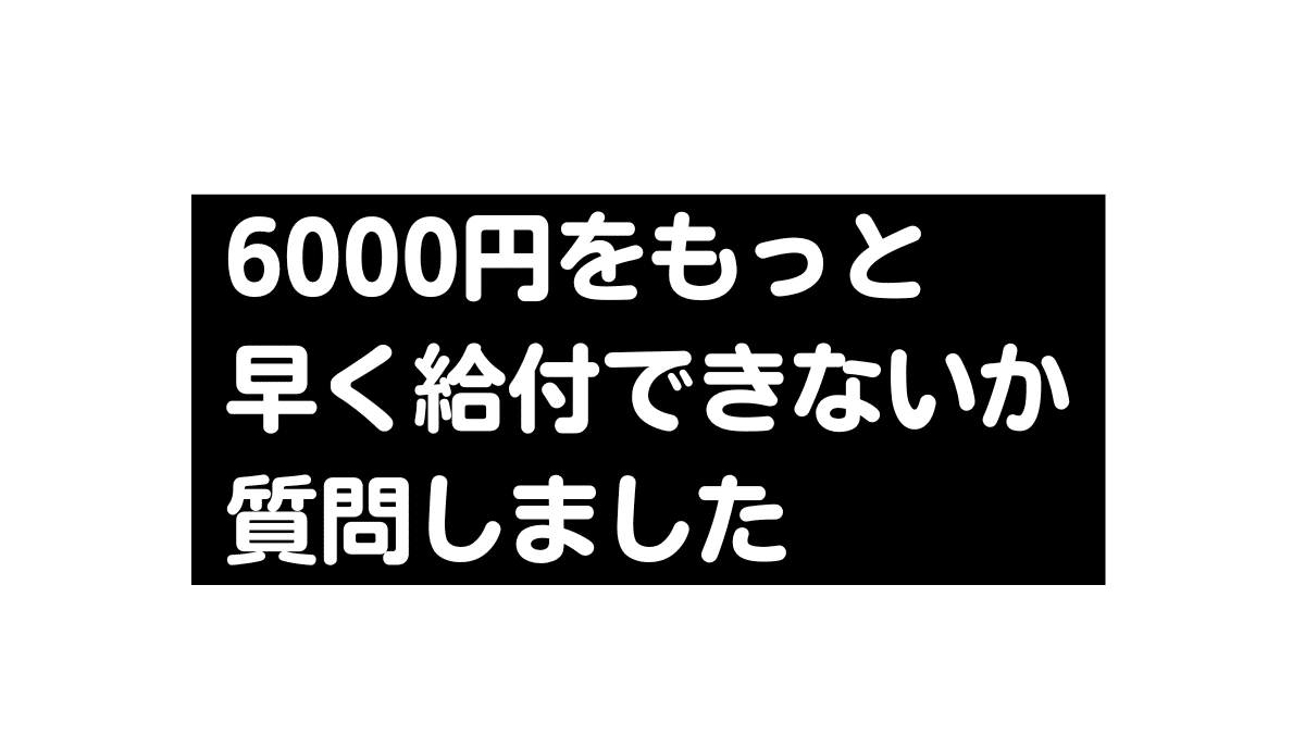 例えば、現金給付6000円が少しでも早い時期に受け取れるように提案したり、その為の口座情報データの仕様を国から早く許可をもらえないかと質問したり、あらゆる角度から市長や部課長にフジノは質問しました。